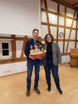 einen Geschenkkorb. Hubert Hopp war von 1989 bis