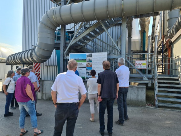 Im Anschluss an die Vorstellung wurden die Teilnehmer durch das Gelände geführt, um die verschiedenen Prozesse und Anlagen zur Biomasse- und Kompostherstellung aus nächster Nähe und auch von oben zu betrachten. Die Führung ermöglichte es den Teilnehmern, die Komplexität und Effizienz der Prozesse im Betrieb rund um Kompost, Biogas, Holzenergie, Fernwärme und Biomassentrocknung zu verstehen und die Bedeutung dieser nachhaltigen Praktiken für die Energiewende zu erkennen.